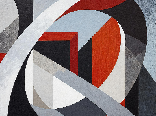 Una pieza que combina formas geométricas rígidas con trazos gestuales cargados de emoción. El contraste visual representa lo racional enfrentado a lo instintivo. La obra está construida en varios niveles de lectura y materia. El color rojo actúa como hilo conductor de la tensión. Ideal para espacios con carácter y profundidad simbólica.